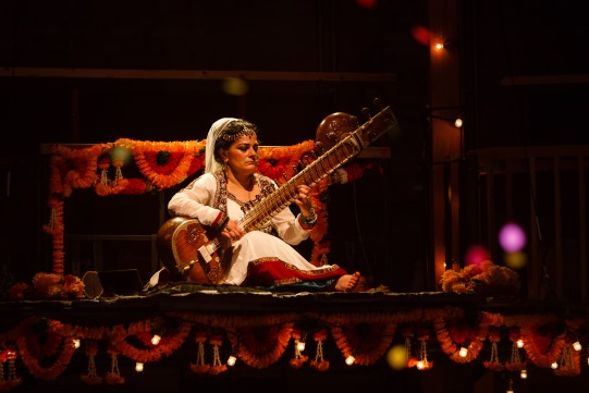 The music was another great element in this production. There were two designated singers, although everyone in the cast joined in from time to time. The main two were Dom Coyote and Japjit Kaur, and not only did they have lovely voices, the songs they sang blended English words and Indian rhythms perfectly. I didn’t catch all the words, and the singing blocked out some of the dialogue in the early scenes, but the overall effect was tremendous.